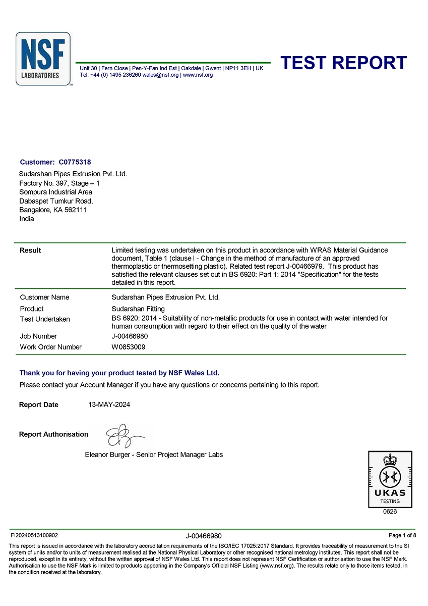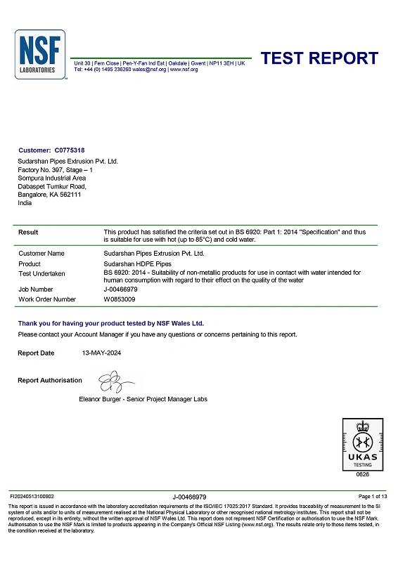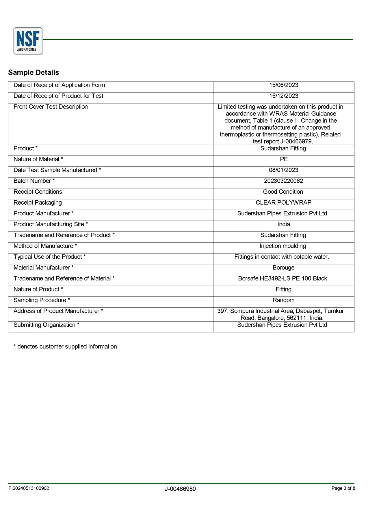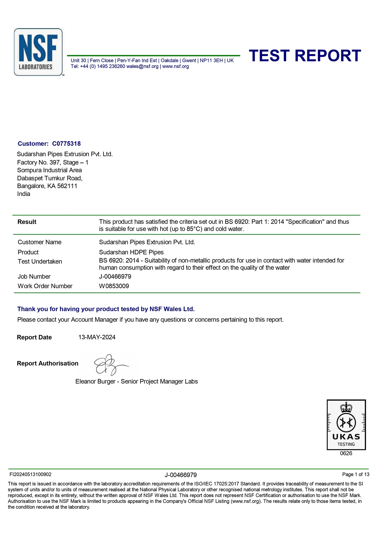 SUDARSHAN PIPES EXTRUSIONS PVd LTD. ISO 4427 2 2019